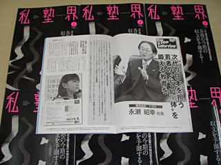 「いえ、いえ…先日取材にご協力いただきましたTop Interviewが掲載されている『月刊私塾界』2月号が本日でき上がりましたので、ご挨拶を兼ねてお持ちしました」
